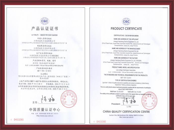 公司始終秉承“品質決定高度、服務鑄就品牌”的經營理念通過ISO9000質量管理體系認證、ISO45001職業健康安全管理體系認證、ISO14001環境管理體系認證,產品均獲得生產許可證并通過CCC認證。不斷引進國內、外先進的生產檢測設備,以此促進企業的科研技術創新及研發力度,保證產品質量,以便更好的服務客戶。